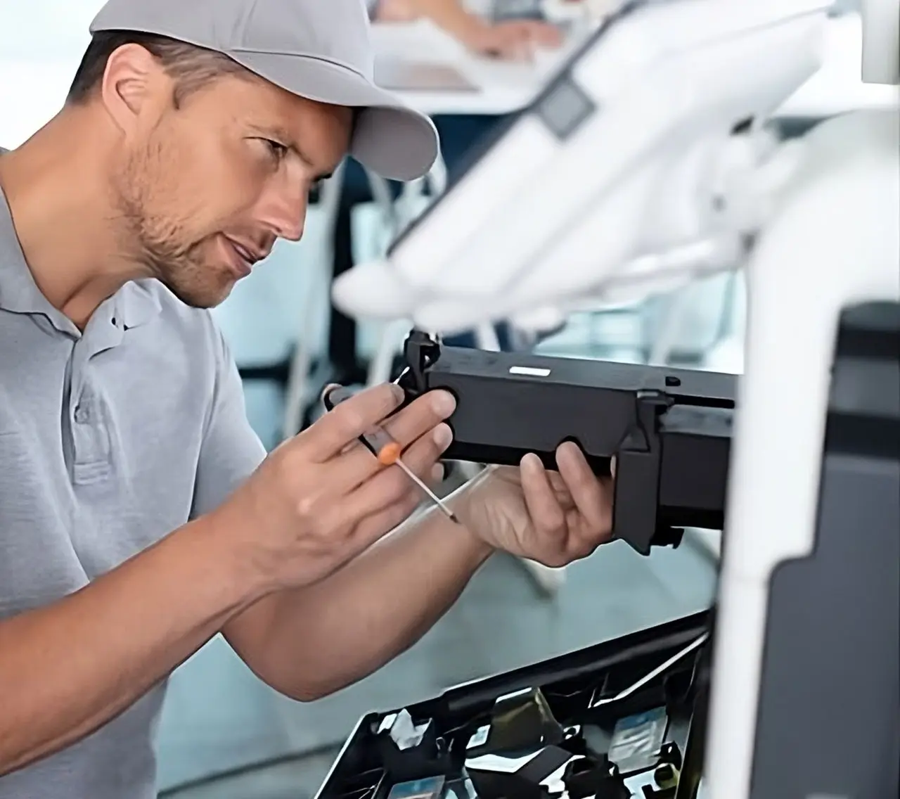 Nuestros técnicos calificados con contrastada experiencia aseguran que tus dificultades se resuelvan de forma rápida y según los estrictos estándares del fabricante de tu fotocopiadora.